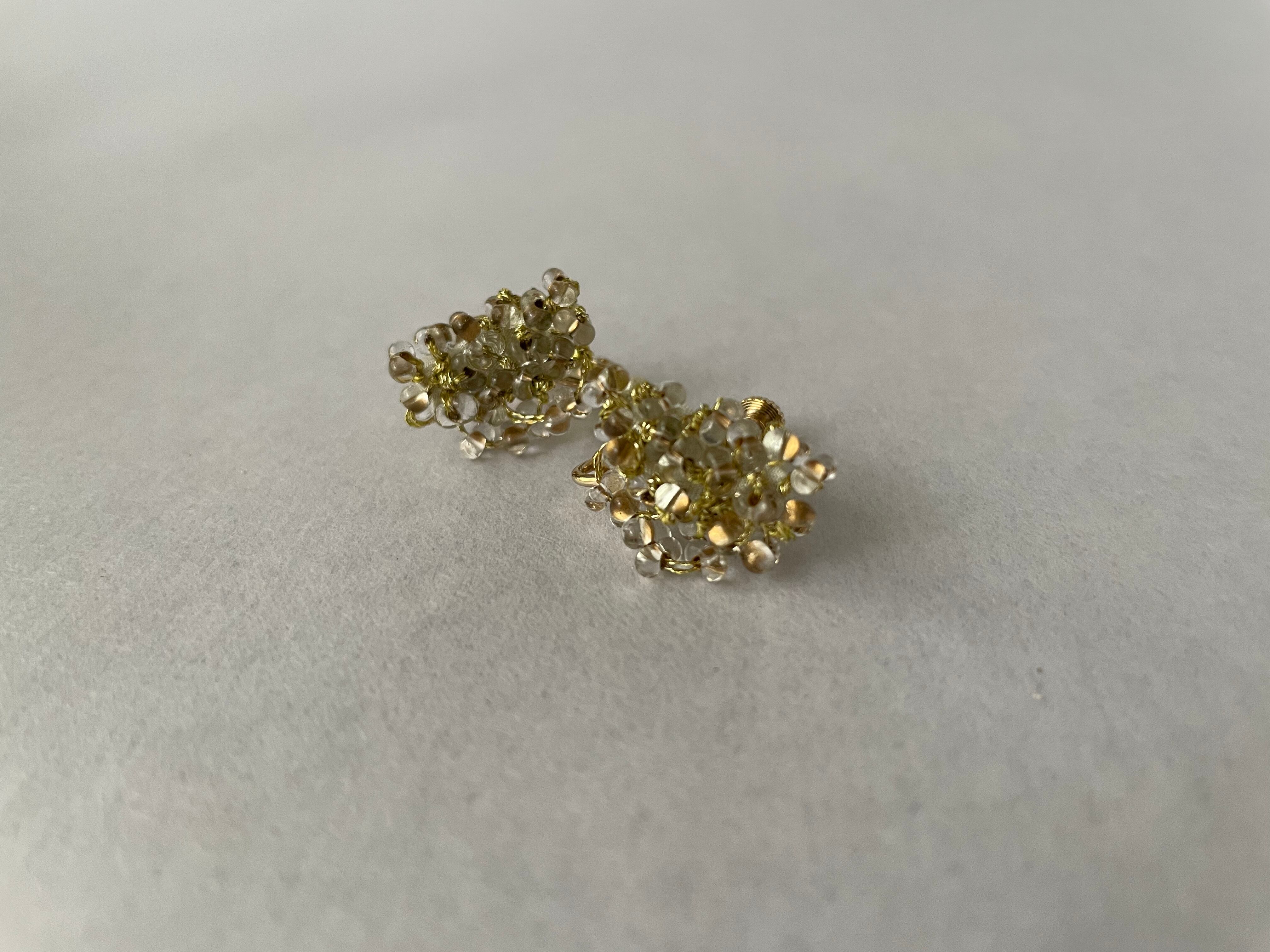 〈material〉チェコビーズ、ゴールドワイヤー/イヤリング金具:真鍮/ピアス金具:キャッチ真鍮、その他ステンレスにメッキ加工